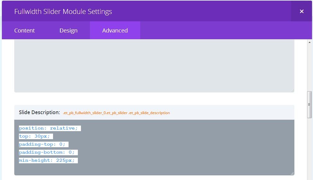 If you are trying to figure out how I made the slider above narrower… Go to the Advanced tab and add a variation of the following to “slide description”.